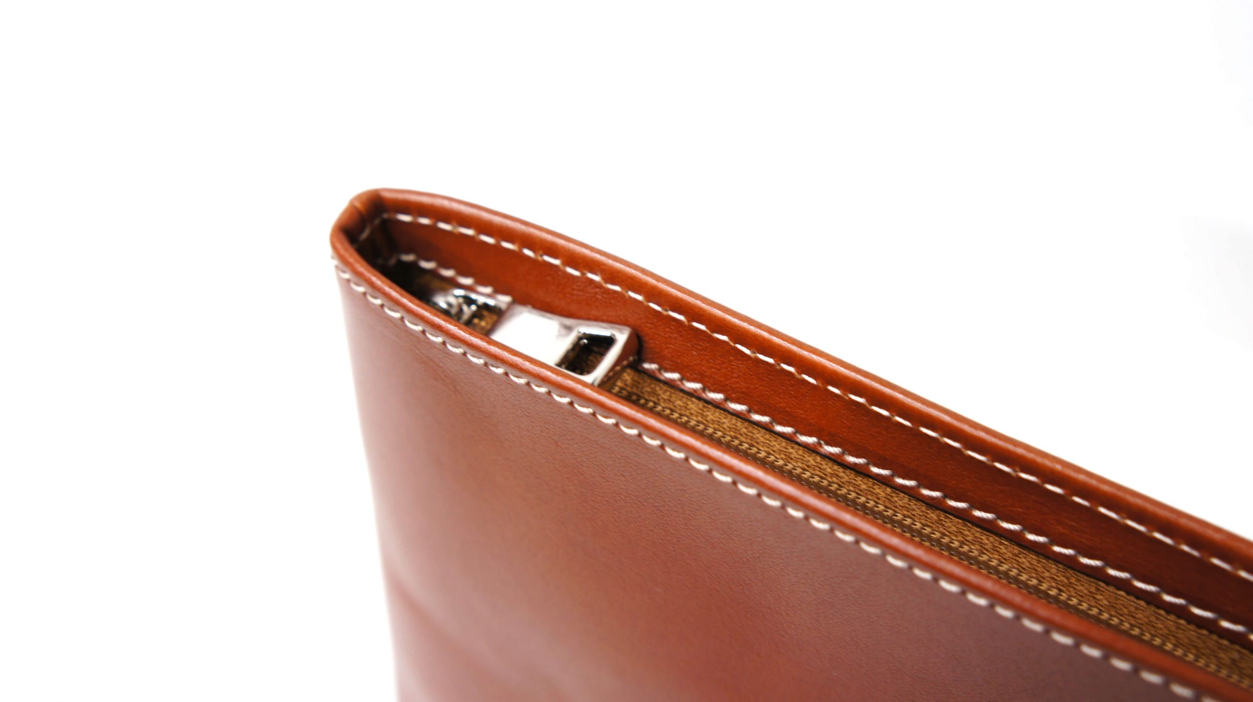 Piel de curtición vegetal. Compartimentos para tarjetas, ventana para DNI y amplio monedero con broche.